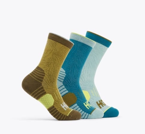 It's time to fly with the Hoka Crew Run Sock 3-Pack. The lightweight crew socks have built in arch support with a seamless toe to maximise comfort and performance. They are perfect for anything your daily adventure throws at you.