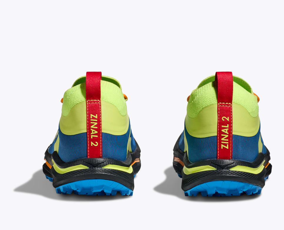 Dominate your trail runs with the Hoka Zinal 2. Lightweight, aggressive lugs, superior grip make the Hoka trail shoe responsive and energetic. The Zinal 2's knit upper keeps debris out, offers a snug fit, while low-profile cushioning ensures comfort. Lightweight, aggressive lugs, superior grip make this Hoka trail shoe responsive and energetic.