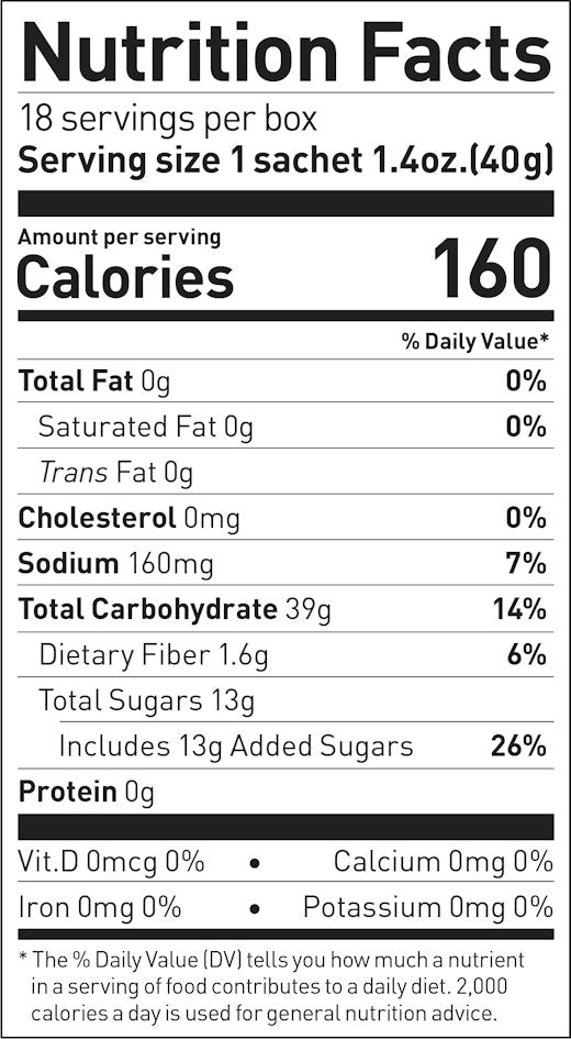Studies have shown that our bodies can make use of up to 90 grams of carbohydrates per hour. One Drink Mix 160 sachet, mixed with 500 ml of water contains 40 grams of carbohydrates.