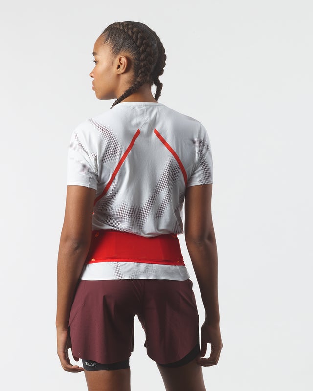The S/LAB Belt is a lightweight, trail running hydration belt designed to sit securely on your hips with minimal bounce. It features a secure zippered pocket for valuables, breathable rear mesh compartment, and two side pockets for quick access to essentials. Compatible with 500ml flasks (sold separately) to keep hydration and gear streamlined without adding bulk.